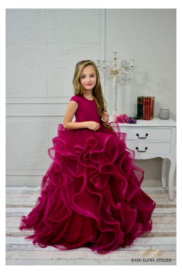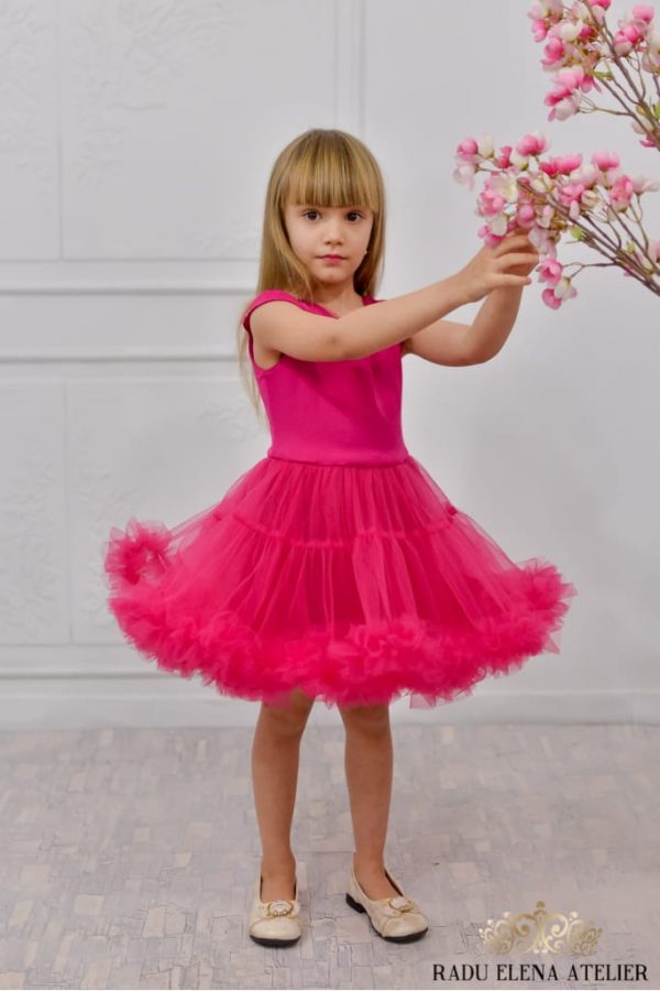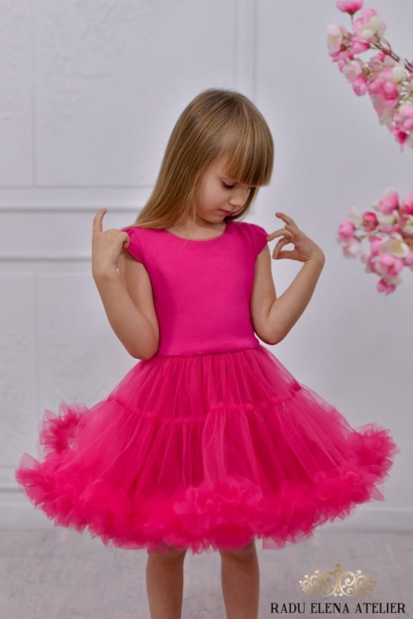 Ciclam – Rochiță tulle floare mini(cu bordura)